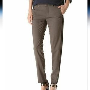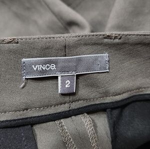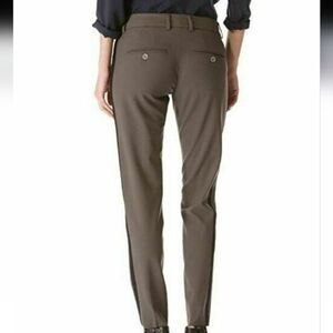 Vince Wool Dress Pants Straight Leg Black Racing Stripes Grayish Green Sz 2