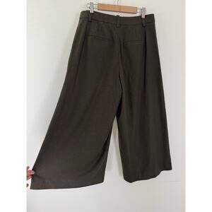 Vince Wool Pants Culottes Crop Wide Leg Pleated Dark Olive Green 8