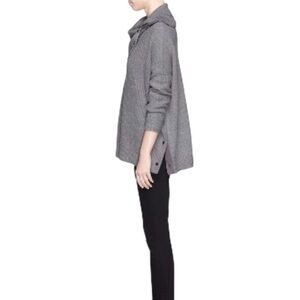 This season is in the mood for woollen glory and with this luxe wool-yak hair rib knit sweater from Vince you will be set for the season ahead. Fashioned with utilitarian snap buttons on the side neck and side seams, this coverup piece is impressively comfortable with its languid silhouette and can be worn with the collar opened for a cowl neck effect or with its side opens for a cape-like appeal.