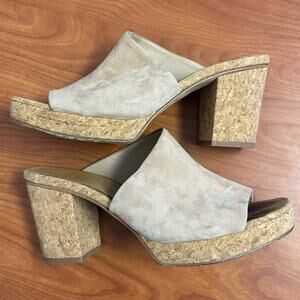 Vince Wyatt Platform Sandal Slides Cork Heel Size 11 Oatmeal Beige Suede Leather