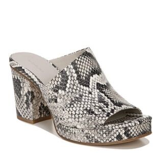 Vince “Wyatt” snakeskin platform mule heels with peep toe. Slip-on style, size 7.5. Excellent condition with light wear on soles.