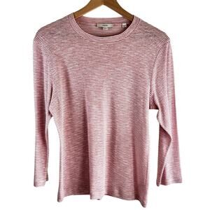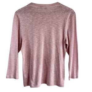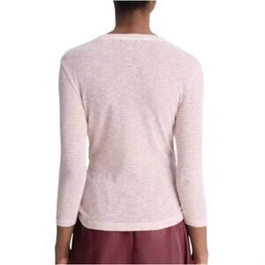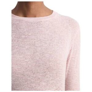 Vince XL Micro-Stripe Cotton-Blend Three-Quarter-Sleeve T-Shirt Pink White