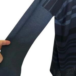 Vince tunic sweater in blue and black striped pattern. Bateau neck and long sleeves. Very oversized boxy fit. Merino wool blend. Bust 30” length 30”. Excellent condition. Size M