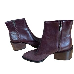 Vince burgundy pointed toe embossed leather chunky heel ankle boots size 6