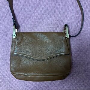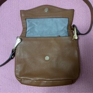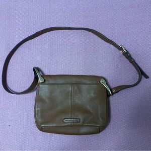 Stylish brown leather crossbody bag. Features adjustable strap. Perfect for everyday use.