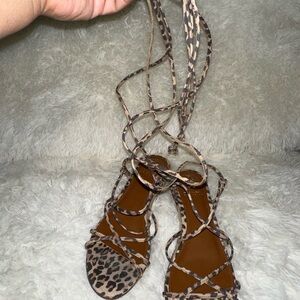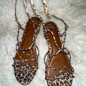 Step out in style with these chic leopard print strappy sandals. Perfect for any occasion, these sandals offer both comfort and fashion.