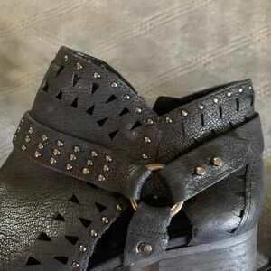 Vince Camuto Black Booties -silver stud detail -laser cut out detail -leather upper -rounded toe with a slight point Color: black & silver Size: 5 M .never worn. They run small and tight