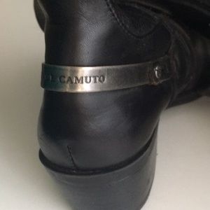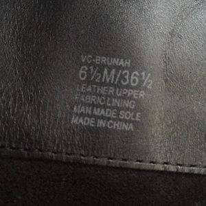 Used Vince camuto leather boots. These are super stylish and comfortable. Can be worn w leggings or a dress from casual to semi formal these boots always get compliments 😊 lots of life left in them. Good uses condition.