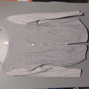 Vince camuto long sleeve gray high low shirts buttons up the back with pinstrip