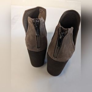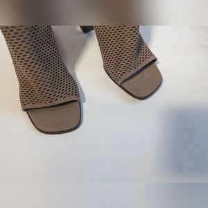 Vince camuto open toed leather woven booties in tope sz. 10 one color scuff on heel as pictured
