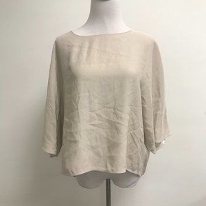 Vince cream silk sccop neck short sleeve cropped boxy tunic top M