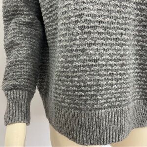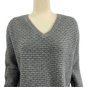 Vince gray double-V neckline long sleeve sweater with textured raised stripes and ribbed edges. Dropped shoulder seams. Please see pictures for more details. Measurements taken with item laying flat. Approximate measurements:
