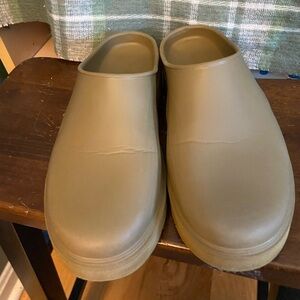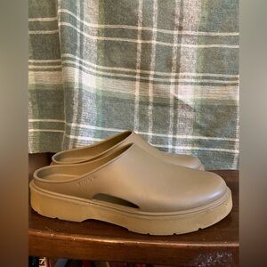 Vince geo rubber slide mules in olive drab size 9 womens 7 Mens. Featherweight EVA backless slip-ons smart enough to take anywhere, comfortable enough to not want to take off.