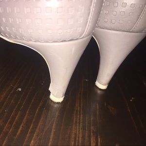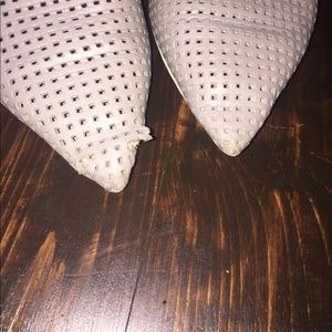 Another poor shoe victim (my puppy got these as well) I still wore them only damage is to the toe of one heel as shown in pics. Not very noticeable at all while wearing and I got many compliments. USA 7m eur 7.5 make an offer I'll accept