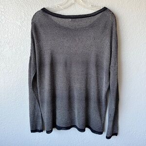 * Features: striped, ombre navy and white, long sleeve, scoop neck linen blend lightweight sweater, semi sheer