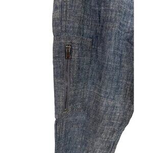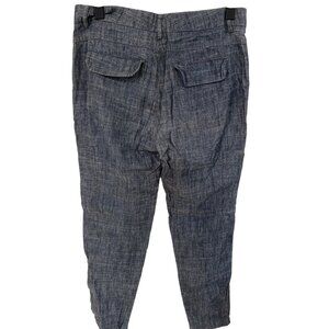 Great pair of pants from Vince in size 27. Lyocell/linen blend. Blue. Waist measures approximately 15.5 inches across. Rise measures 10 inches. Inseam measures 26 inches. Zip fly, cargo pockets on the side. These are in very good gently used condition with no holes or stains.