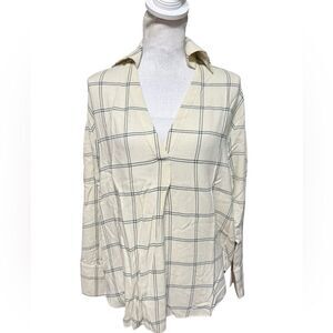 Vince long sleeve vneck wool blend blouse ~pale oat | size M