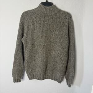 Vince men's gray wool blend chunky cable knit button mock neck sweater