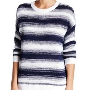 Vince navy blue and off-white striped sweater. Three-quarter sleeve, super cute with a pair of distressed jeans or jeans shorts for summer.