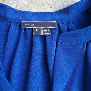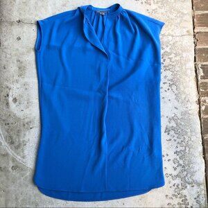 Vince popover shift dress tunic split V-neck pockets mini blue. Short sleeves sleeved. Loose oversized fit.
