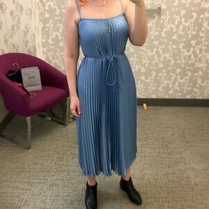 Vince sleeveless satin accordion pleated dress L spaghetti straps, waist tie
