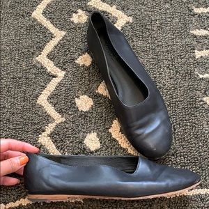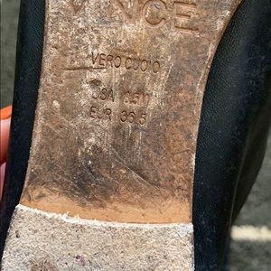 Black Vince leather flat. The leather is buttery soft and comfortable at the start. The shoe will mood to your foot.