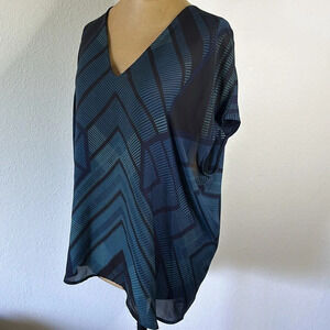 Vince sz XS silk blouse blue black geometric print great pre owned condition