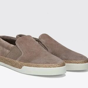 Vince taupe Johan Round Toe Slip On Leather Espadrille sneakers