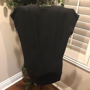 Black silk tunic. V’d neck. Capped sleeves . Pockets. New without tags.