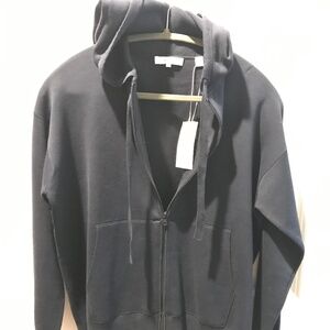 This is an oversized sweatshirt-style sweater. It has a beautiful smooth knit and wide zipper,