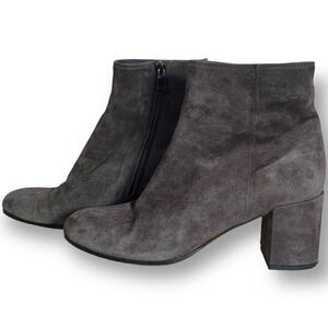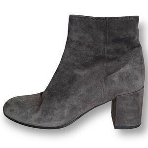 Vince Blakely Bootie Steel Gray Suede Leather Round Toe Block Heel Ankle Boot