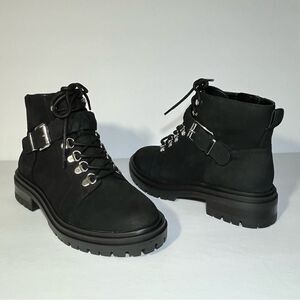 Lace-up style, grommet details, braided front buckle, side zipper