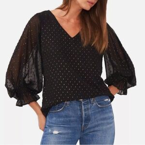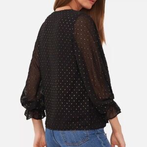 Vince Camuto Black and Gold Ruffled Blouse with 3/4 Sleeves Women’s Size M