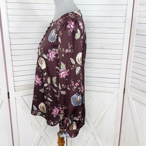 Vince Camuto Floral Puff Sleeve Button Front Blouse Brown Pink Wildflower
