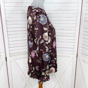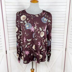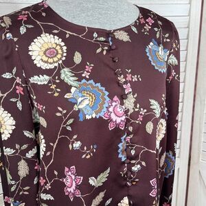 Vince Camuto Floral Puff Sleeve Button Front Blouse Brown Pink Small Wildflower