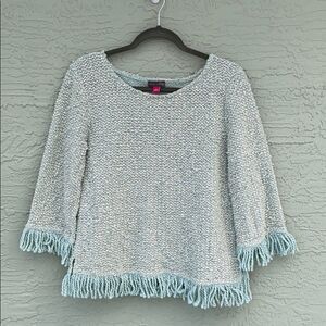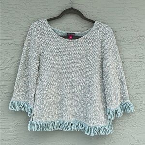 Vince Camuto Fringe Trim Sweater Sz S