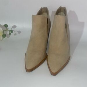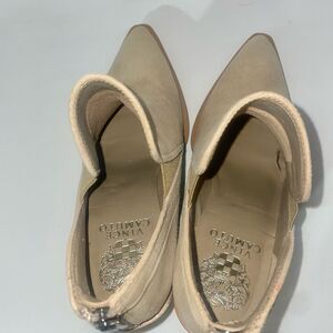 Chic Vince Camuto ankle booties. Soft tan suede with a stylish block heel. Ideal for versatile wear