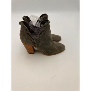 These Vince Camuto ankle boots are a stylish and comfortable addition to your wardrobe. The soft suede material and unique split-shaft design offer a modern twist on a classic silhouette. The side zipper closure ensures easy wear, while the block heel adds a touch of sophistication. Perfect for everyday wear or special occasions, these boots will elevate your style.