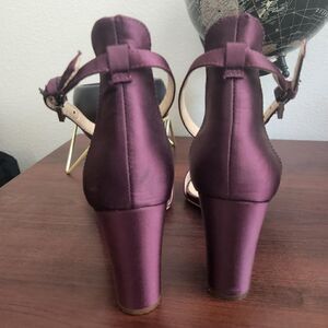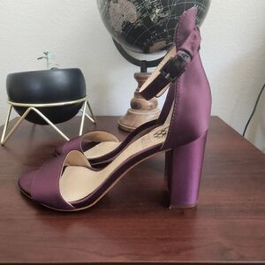 This versatile block heel sandal secured with a slender ankle strapple dress up any look! Synthetic soul. Heal height approximately 3 and a 1/2 inches. Ankle strap buckle. True to size.