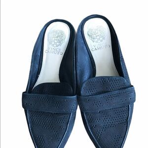 Vince Camuto Kalyans Leather Flat Slip-On Pointed Toe Mules Black 6