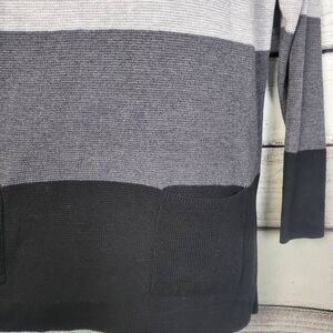 Vince Camuto Large Colorblock Knit Hoodie Sweater Brown Beige Gray Stripe Pullov