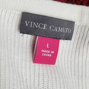 Stay cozy and stylish in this Vince Camuto colorblock knit hoodie sweater. Features a V-neckline, drawstring hood, and a mix of neutral tones for effortless layering.