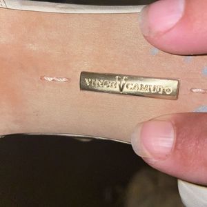 Vince Comuto open toed T strapped heels. Cream Leather. Pretty good condition for lightly used. Heels have a few marks but nothing making them not worth buying.