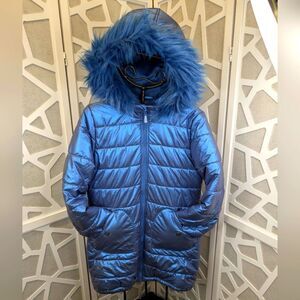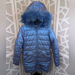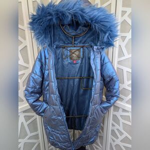 Vince Camuto Metallic Blue Hooded Puffer Jacket Winter Coat