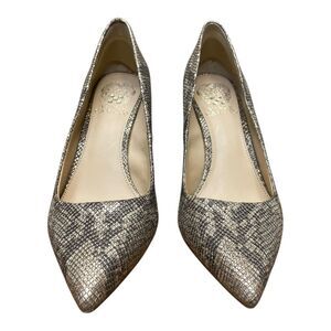 Vince Camuto Metallic Neutral Gray Snakeskin Patterned Pumps Size 8.5 EUC