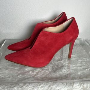 Elevate your style with these Vince Camuto red heels, featuring a sleek stiletto design and a minimalist V-shaped vamp. Crafted from high-quality materials, these statement heels are perfect for formal occasions.