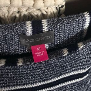 Vince Camuto Navy Striped Sweater Knit Tank Top Size Medium. Great condition. Blue and white. Square neck. Small slits on sides