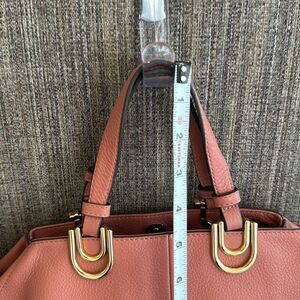 Vince Camuto Plum Soft Pebbled Leather Satchel Handbag Color Sushi/Coral Top Zip