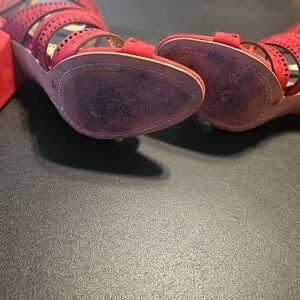 Vince Camuto Red Rose Strappy Suede Block Heels