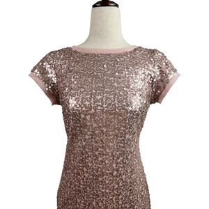 Vince Camuto Rose Gold Sequin Shift Cocktail Dress 2